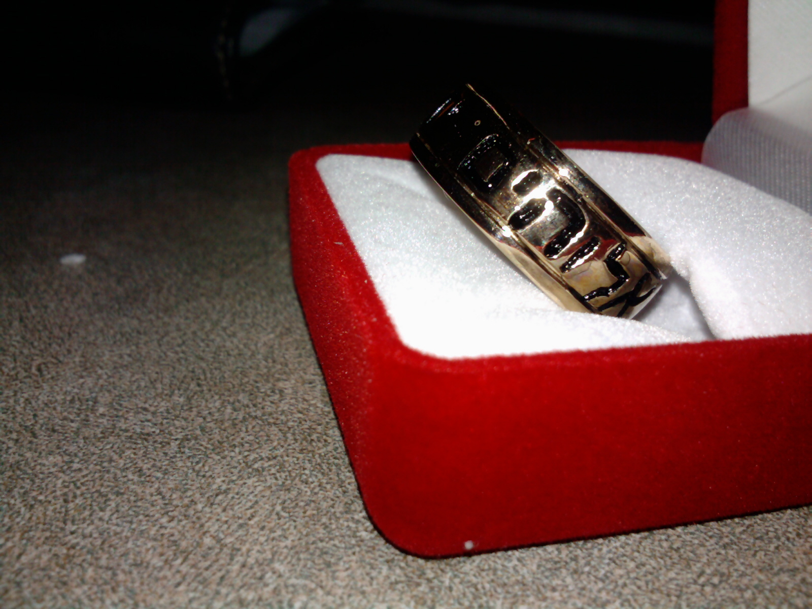 But I created these similarly. The writing is all carved into the rings and says “Blessed by God,” in ancient Hebrew. It’s a 14 karat custom set on the same line and mine and my wife’s.
