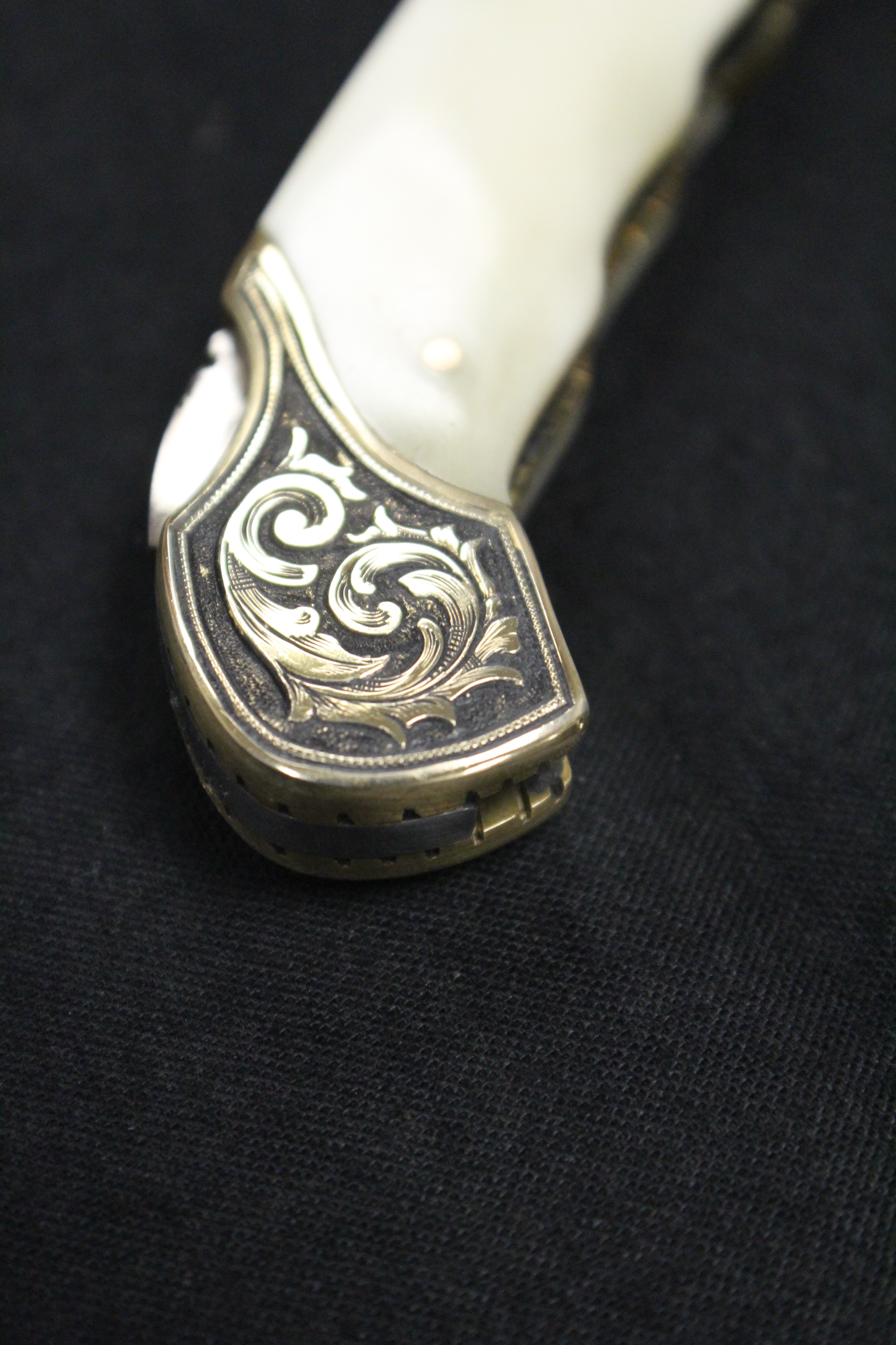 I got this knife from a guy years ago. He wanted to get rid of it and I was just beginning to engrave. I said, “Hey, that would be a great knife to engrave!”