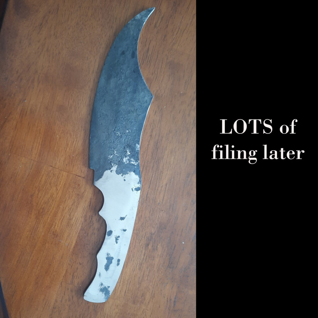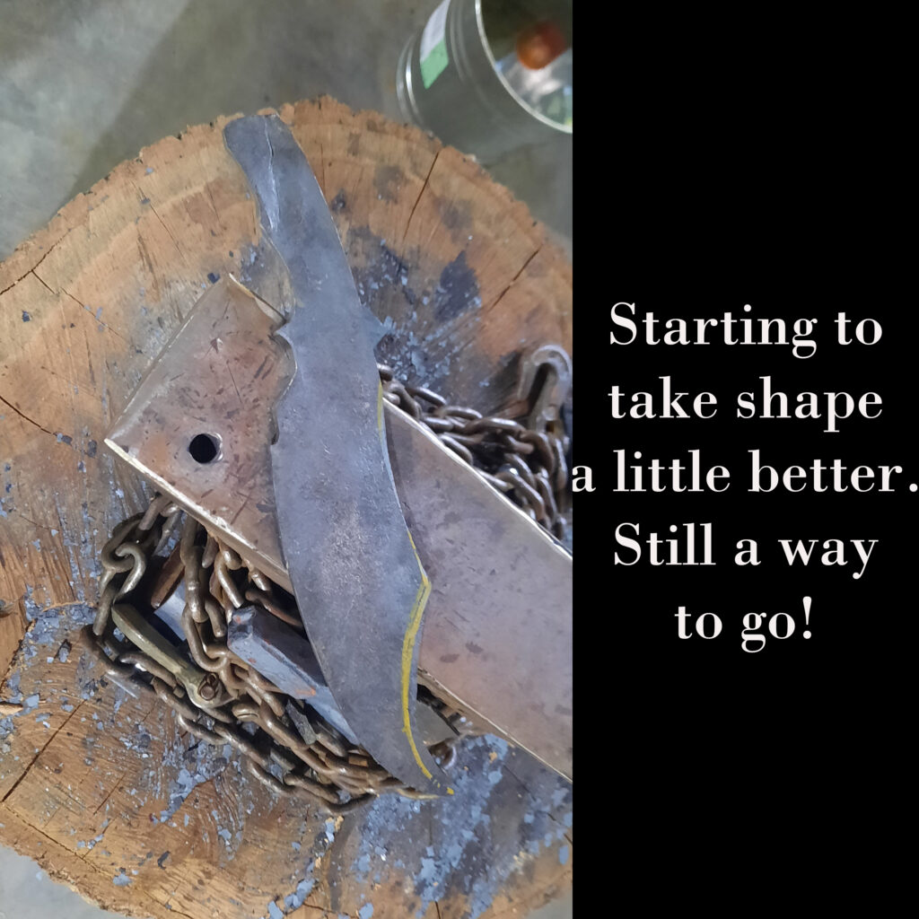 A friend gave me a lawnmower blade from a Bad Boy mower with a challenge to see what I could do with it. Challenge accepted! I had to do some research on the metal of the blade and then started to work.