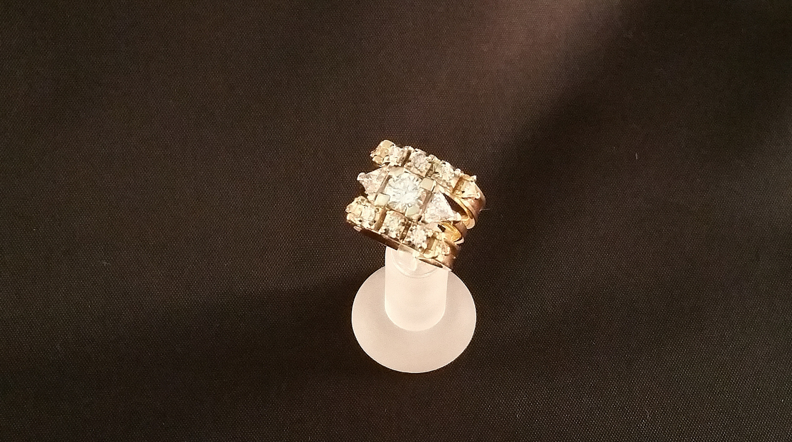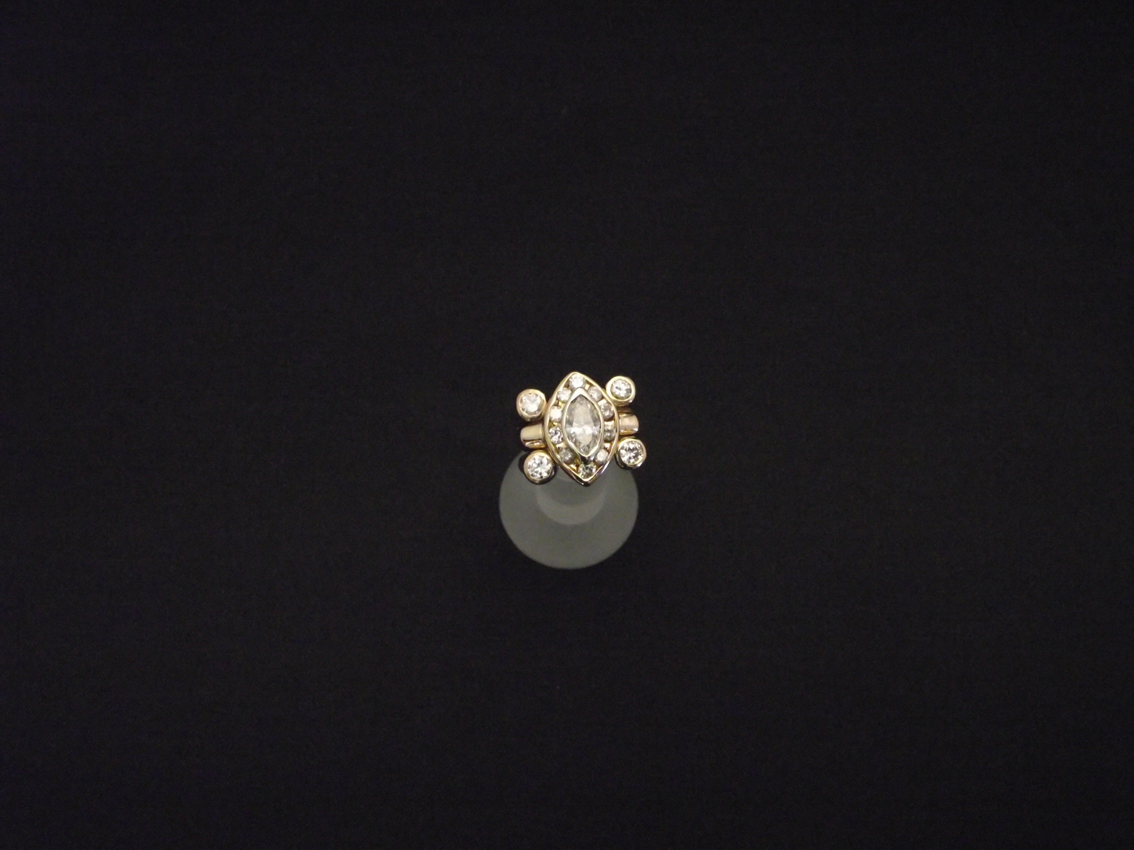 This is another piece of hers. We began with her original wedding ring. She likes jewelry marquise and she likes the halo look. But she was in the healthcare profession and couldn’t have anything with prongs that might catch on something.