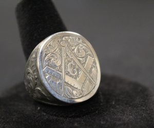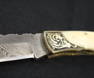 Folding Damascus Steel Drop Point Knife with Bone Handle & Brass Guard