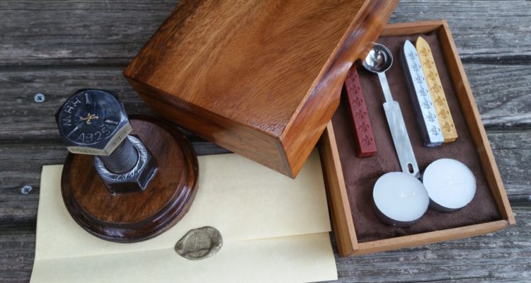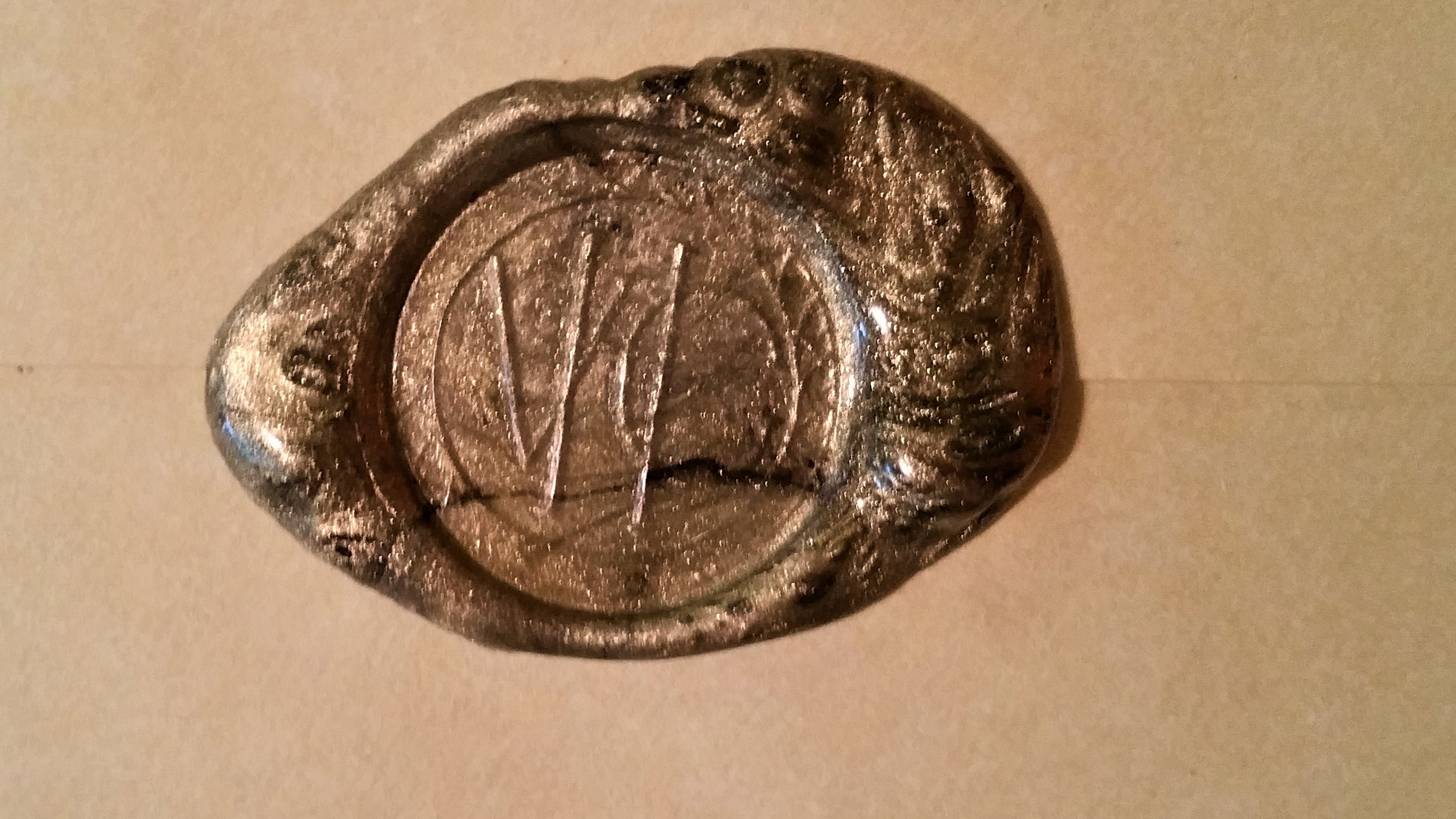 When you unscrew the bolt from the “paperweight” you will find an old fashioned wax seal with the company letters surrounded by laurel leaves.