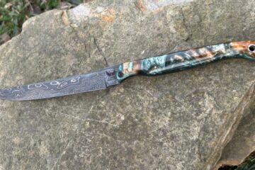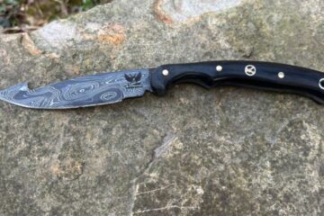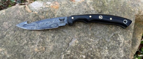 Damascus Small Skinner with Gut Hook – Black Micarta Damascus Small Skinner with Gut Hook – Black Micarta “Built for the Moment That Matters” This knife was made with...